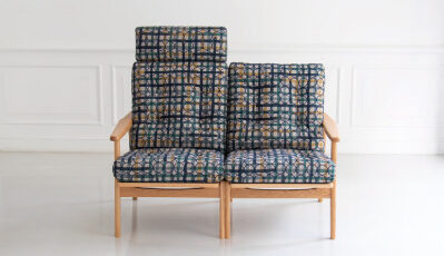 | 1 シーター \210,100(本体 \191,000) W655 D775 H770 SH440 mm オーク材 ※限定オリジナルテキスタイル | アームレス \184,800(本体 \168,000) W570 D775 H770 SH440 mm オーク材 ※限定オリジナルテキスタイル | ハイバック 1 シーター \279,400(本体 \254,000) W655 D785 H863 SH440 mm ウォルナット材 ※限定オリジナルテキスタイル |