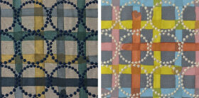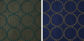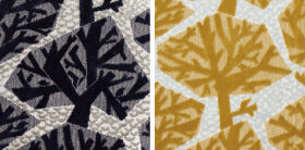 | “minamo” × “tambourine” 左: forest mix | 右: flower mix ※限定オリジナルテキスタイル | “tambourine” 左:kahki × green | 右:navy × brown ※限定オリジナルテキスタイル | “fogland” 左:navy | 右:yellow |