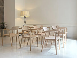 2008年の発売以来、HIROSHIMA アームチェアは木目の向きや手触りにまでこだわる弊社の精緻なモノづくりとともに、多くの方に愛されてきました。今回、そのモノづくりの姿勢を受け継ぎ、素材と誠実に向き合った新たな取り組みが「HIROSHIMA natural」です。