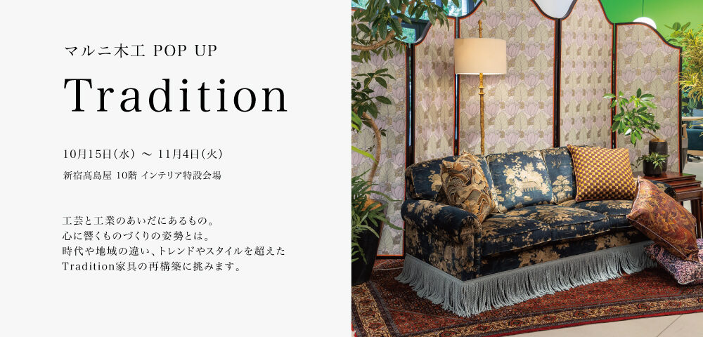 10月15日(水)より新宿高島屋 10階 インテリア特設会場にて「マルニ木工 POP UP Tradition」を開催いたします。