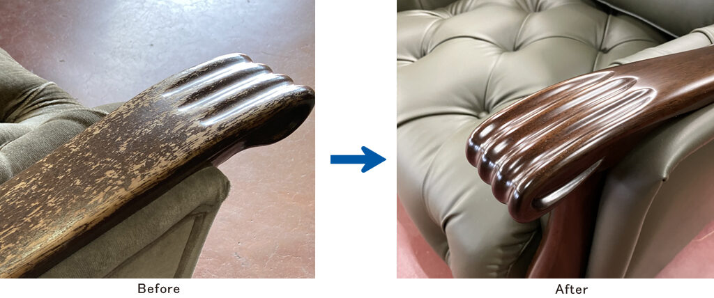 椅子やソファの張り生地の傷みには気づきやすい一方で、木部のくすみや細かな傷は、毎日使ううちに見慣れてしまいがちです。お子さまが小さい頃につけた傷や、ペットとの暮らしの跡が思い出として残っていることもあるかもしれません。